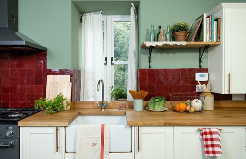 The kitchen is traditionally stylish with a luxury heritage feel, having a modern range oven with gas burners, belfast sink with swan-neck mixer tap, and charming reclaimed tiles to complement the wooden cabinetry. It is very well-equipped, having everything necessary to cater to any culinary occasion. There is also a dishwasher, washing machine, and a Nespresso coffee machine for the perfect morning blend.