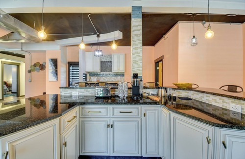 Launch your Finger Lakes retreat at this industrial-chic condo in Seneca Falls! Whether you're planning on sipping your way through the local vineyards or exploring the sun-kissed shores of the lakes, this vacation rental serves as the perfect base. This 3-bedroom, 1.5-bath abode can comfortably host any group getaway, from birthdays to bachelorette trips, coming complete with an airy loft-style interior, a full kitchen, and peaceful surroundings to maximize your relaxation.