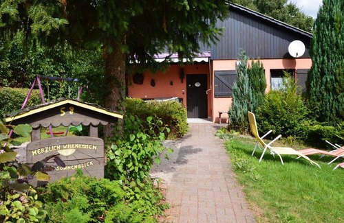 The holiday home »Sonnenblick« is about 70 square meters and can accommodate up to 4 people. The »Sonnenblick« holiday home has: Large living / dining room open fireplace Sauna Satellite TV, DVD player and stereo system 2 bedrooms with 1 double bed each Kitchen with 4 ceramic hobs and oven, dishwasher, refrigerator with fridge-freezer, microwave, coffee maker, Kettle and toaster.Washing machine and dryer Bathroom with stepless shower and WC Internet accessGaszentralheizung In-house playground, a covered terrace and barbecue area. Ground level and stepless entrance. Additional blankets and pillows on request. Maid service during the stay possible.