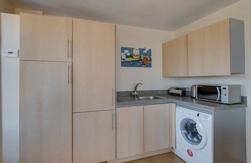 Size: Sleeps 3 in 2 bedrooms Beds: King size bed in master bedroom, single bed in 2nd bedroom Rooms: Open plan living, dining and kitchen. Family bathroom. Single bedroom. Master bedroom with shower room en-suite Kitchen/Utilities: Electric oven and hob, large fridge/freezer, dishwasher, washing machine, microwave, kettle, toaster Entertainment: Flat screen TV, DVD player, JVC stereo system with bluetooth, games, books and DVDs Parking: Allocated parking space for one small car General: WiFi included, towels and bedding included, please bring your own cot bedding and beach towels. Please confirm if you require the travel cot and highchair at the time of booking. Pets: Sorry, no pets