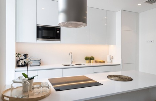 This bright and modern apartment in the heart of Lisbon has 2 bedrooms, one with a double bed, other with two singles beds. In the living room, you will find modern decoration, a TV and a sofa, and a fully equipped kitchenette.