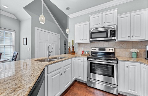 The heart of our home, the updated kitchen, is equipped with everything you need to prepare meals or snacks. Whip up a feast and gather around the dining area for quality time with your loved ones. Features stainless steel appliances, a coffee maker, and plenty of dishes and tools for your stay.