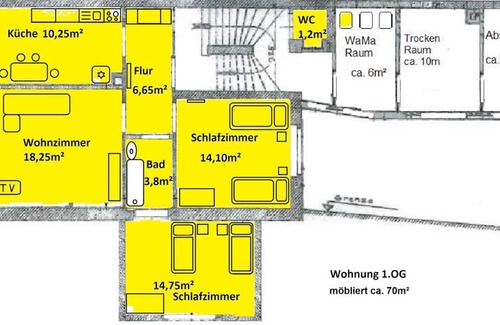 For fitters & families - FEWO with roof terrace is located in Elsterberg. For fitters & families - FEWO with roof terrace provides accommodation, featuring Security/Safety, Bedding/Linens, Breakfast, among other amenities. This Apartment features Security/Safety, Bedding/Linens, Breakfast, to make your stay a comfortable one.