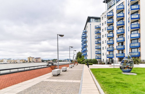 Newly Furnished to a high standard Riverside in Canary Wharf O2 Excel is excellent for Contractors, Business Travellers, Friends and Families. It's the perfect location for Canary Wharf, Excel Exhibition Centre, O2 Arena and City Airport. This unique spacious apartment is large and comfortable,. The bedrooms (one with en-suite shower bathroom) as 2Double Beds and a single Bed. The second bedroom as 3single Beds.The kitchen is fully integrated with washing machine, dishwasher, oven and hob for your cooking. We also provide coffee machine for your morning coffee and a microwave , The dining and living area is overlooking the river. The bedrooms can be configured with either king or twin beds, and have wardrobe space for guests to unpack. The kitchen is fully equipped and the open plan living and dining area is both spacious and cosy for a relaxing drink after a hectic day. We provide all our guests with high quality linens, toiletries, hot drinks, bottled water, wine, SMART TV, fast fibre WiFi and offer private parking - a real rarity in London.