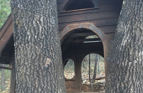 Forest Cottage is 5 bath, 8 bedroom, private retreat secluded in trees on 3 acres just ten minutes south of Auburn and I-80 and five minutes from Foresthill CA. Newly Renovated into a home from a Preschool / Daycare, it boasts a large, flat completely fenced playground with drinking fountains, large open kitchen and comfy gathering room, huge windows with treehouse views, chandeliers, beautiful braided tile floors, inviting fireplace, emergency generator, mahogany trim, 10 sacred grove murals, ADA ramp, 6 foot Whirlpool Bathtub in room 8, 4 TVs and fast WiFi 100mbps.