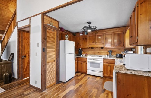 This rustic cabin has been renovated in 2024 which provides a warm, cozy atmosphere for family and friends to enjoy. The cabin offers a fully functional kitchen, one bedroom on the main level with a queen bed and 1 pull out couch in the living room that turns into a queen bed. The living room also includes a large TV. The upstairs loft provides 1 full bed and 1 large chair that turns into a twin bed with a large TV as well. There are board games for adults and children to enjoy including coloring books. The cabin also has an outdoor living space with patio furniture that seats six with a brand new gas grill and a wrap around deck. Enjoy the peaceful sounds of nature while sharing a meal or a social gathering on the deck. This cabin offers something attractive for everyone.