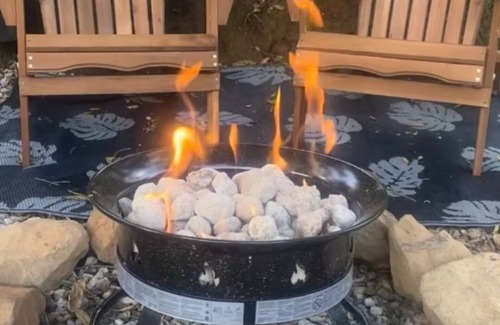 Outside, the amenities continue to impress. Fire up the BBQ grill to savor al fresco dining surrounded by nature’s symphony. As evening falls, gather around the inviting propane fire pit to share stories and laughter. For those who wish to stay connected, WIFI and a TV are at your fingertips, perfect for unwinding after a day of exploration.