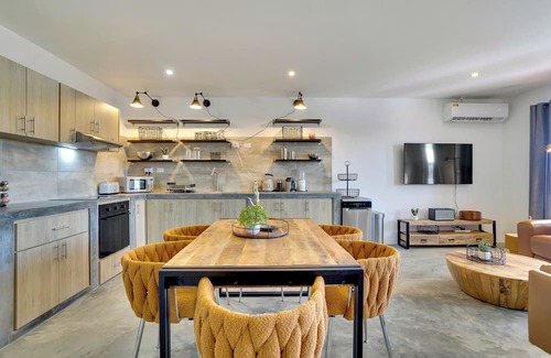 The BRAND NEW stunning FourVillas N4 is very private, modern, extremely spacious with a PRIVATE sparking MAGNESIUM MINERAL POOL and a l fully gated private garden and parking area and DIVE RINSE TANK. The villa has two spacious suite style bedrooms, two bathrooms, a fully equipped modern kitchen, open indoor-outdoor layout, super spacious patio with gorgeous sunsets and pool and garden views, stylish finishes and beautiful design!