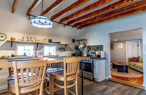 This carefully renovated 2nd floor apartment offers a large fully equipped kitchen, a gorgeous bathroom with hand laid subway tile shower and radiant in floor heating, and a plush king size bed. You'll have everything you need here for a single night or a weeks long getaway, with available and experienced hosts on site you'll want for nothing during your stay.