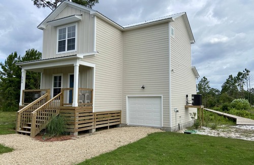 This brand new home built in 2023 is a hidden gem nestled on a fresh water lake in a newly developed gated subdivision in Carrabelle. For all the beach lovers, this property is located 1-2 miles from the beautiful Carrabelle beach. If sport fishing is your passion, you are less than a mile to the Carrabelle marina. The home has lake access via a boardwalk and dock where you can paddle board, canoe, kayak, and fish. Enjoy the inground community pool or just sit back and take in nature. Watch deer, eagles, and birds off the back patio. This little secret has something for everyone! NEED A GOLF CART, TAKE ADVANTAGE OF OUR DISCOUNTED RATES EXCLUSIVE TO OUR CUSTOMERS STAYING AT THE NEST. 1 WEEK FOR $450!