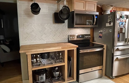 Your Burdett adventure begins at this 3-bedroom house. Centrally located near Watkins Glen, Ithaca, Geneva, and Corning, you will be just moments from everything. Step inside and be greeted by a peaceful ambiance that instantly puts guests at ease. With 1 king bed, 1 queen bed, and 1 twin bed, there's plenty of room for everyone to unwind and recharge. The living room offers a terrific space to relax, complete with a cozy queen bed. Take advantage of the iron, WiFi, AC, heating, hair dryer, and washing machine provided for your convenience. After a day of exploring, indulge in a soothing bath in the recently remodeled bathroom equipped with a hair dryer and bathtub. The kitchen is fully stocked with anything and everything in case you decide to take advantage of the amazing local produce and cook at home. We hope you'll enjoy your stay at our cool house.