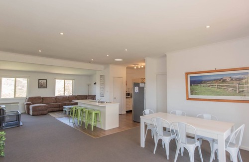 One room features a King Bed with wall-mounted TV and ensuite, two rooms feature queen beds, with the other two featuring a set of bunks each. The kitchen is well equipped and there's a BBQ and outdoor setting for those warm summer nights. There are 2 TV's, one with DVD player, free Wi-Fi and Foxtel are provided and an expansive yard for the kids to play in. Keep warm in winter with an reverse cycle air conditioner or next to the wood combustion fire (wood not included) while enjoying the beautiful sunsets over the tranquil Snowies. There is also electric heating throughout, full laundry and a beautiful front porch.