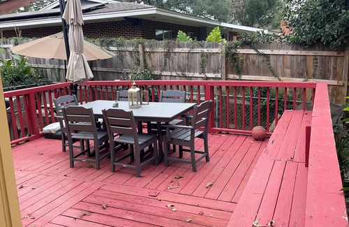 Great house for a large family or several couples to enjoy a visit to Tallahassee. Fenced back yard with multiple decks, firepit and outdoor kitchen. Home has 3 queen beds, 1 full bed and 2 twin beds. Two separate living areas to spread out and enjoy Tallahassee. Updated kitchen with a nice dining room for entertaining. Huge rear living area to enjoy watching the big game or favorite movie. Plenty of parking and convenient to restaurants and nightlife.