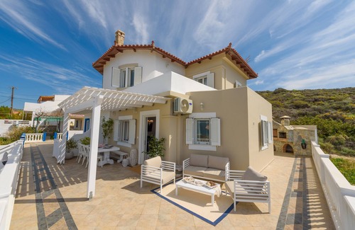 Full view in a luxury house beside the beach-Crete is located in Neo Kalamaki. Full view in a luxury house beside the beach-Crete provides accommodation, featuring Air Conditioner, Oceanfront, Laundry, among other amenities. This Villa features Air Conditioner, Oceanfront, Laundry, to make your stay a comfortable one.
