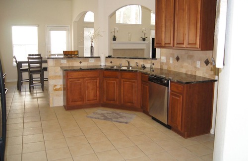 Enjoy our full kitchen with a breakfast bar, coffee area with coffee provided. Featuring new granite counter tops, gas stove, stainless steel dishwasher, full refrigerator/freezer, silverware/dishware/glasses/pots & pans, cooking utensils, etc. stocked.