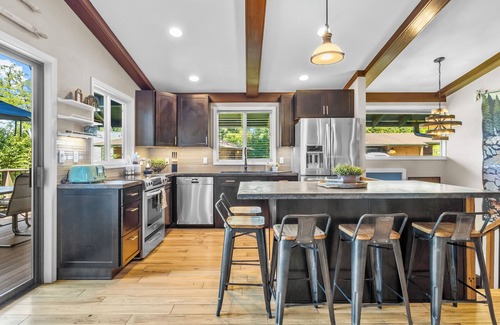 Enjoy what this 3-bedroom house has to offer. With 1 king bed, 2 queen beds, and 1 bunk bed, guests will find this property to be a terrific choice for a delightful stay. Complete with AC, indoor & outdoor games, a washing machine, WiFi, and more, this charming home provides all the comforts needed for a relaxing getaway. Large amount of onsite parking! Enjoy all that Olympia has to offer when you stay at the Chalet!