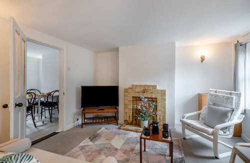 Walk less than a mile north of the river, passing pretty country residences and farmland, and this handsome mid-terrace home enjoys a peaceful rural setting with fields front and back. A paved driveway means you can park and unpack at your own pace. Step inside through a handy porch area, then you’ll be straight into a welcoming living room with a two-seater sofa, armchair, Smart TV and feature fireplace (decorative only). Beyond, the dining table extends to allow elbow space for all. Close by, the staircase heads to the first floor. Adjacent to the dining area, the kitchen is compact but houses all the essentials for a fuss-free stay, with a window and door onto the rear garden. Once your day is done, the upper floor has a large double bedroom overlooking the front of the property, plus a single bedroom and a family bathroom.