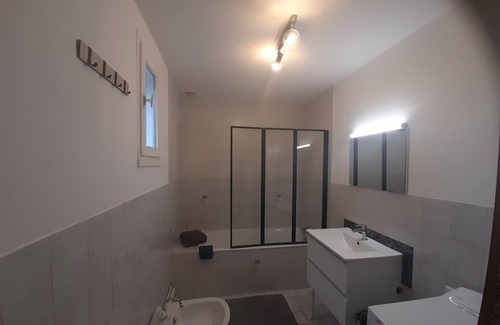 Upstairs: 1 living room with Bz merino 140x190 + connected TV with your personal shortcuts Netflix, premium, etc.... + demodulator (Orange tv), 1 bathroom bath shower, bidet and toilet,