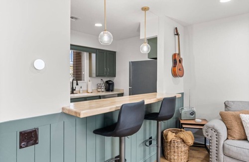 We cannot wait to host you! This is our cozy 1BR, 1BA condo that previous guests have loved, but you will find a clean, crisp aesthetic, a brand-new tiled shower, new floors, paint, decor, and a kitchen with seating.