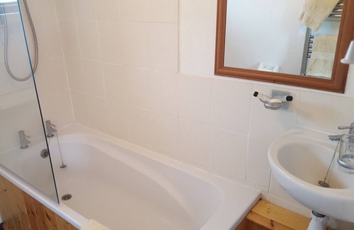 The cottage comprises two rooms and a bathroom: to the right of the front door there is a beamed living room with vaulted ceiling, two comfy settees, freeview TV and DVD player whilst at one end is a kitchenette offering full-size fan oven, dishwasher, sink, small under-counter fridge with separate freezer compartment, microwave and toaster, and table and chairs. To the right of the hallway is a large double-bedded room with an adjacent bathroom offering bath with electric shower over, basin and toilet. The washing machine is housed in a laundry room to the rear of the cottage. The property is centrally heated outside the summer months, and an electric fire is provided in the living room for cooler summer evenings. Garden Cottage is south-facing and visitors enjoy sitting in the peaceful garden, reading, eating or just watching the wildlife. A garden table and chairs are provided, as well as two sun-loungers and a BBQ. A well-behaved dog is welcome - however, although gated and surrounded by thick hedges, I cannot guarantee that the garden should be considered totally dog-proof if your dog was determined to escape!
