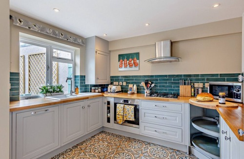 Outside, accessed through the living space’s patio doors, awaits a large, south-facing garden which is shared with other guests staying in the property. Use the furniture on the patio to enjoy al fresco morning coffees or evening meals. Take in the far-reaching views from the garden, let dogs unwind under the sun, or head to the bottom of the garden for a moment of peace and quiet surrounded by greenery.