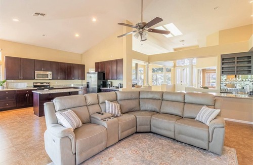 Don't miss out on this stylish home & welcoming vacation oasis. The serene garden backyard includes professional water misters to provide cooling for the warm summer evenings. The hot tub allows for relaxation at the end of an active day. This spacious home is ideal for a friendship getaway, a fun sports weekend, or a peaceful retreat from the daily grind. This property is centrally located near excellent restaurants, spas, casinos, golf/sports entertainment, hiking, cycling & shopping!