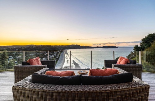 This property captures sunsets and gives breathtaking views along Onetangi Beach. Garrett View offers spacious luxury accommodation and is just a short stroll down a track to the beach.