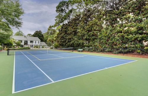• Tennis court tucked beneath magnolias