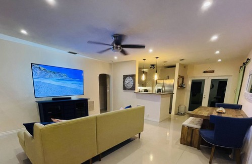 Welcome to this very centrally located house just minutes away from FLL airport, the Beach, Downtown Ft. Lauderdale, i95, 595 & FL Turnpike which all take you anywhere else! The backyard is your private tropical Florida Keys getaway with palms 7 trees surrounding you and your very own backyard bar to hangout in! BBQ, corn-hole and just plain hangout & relax. Complete with lights to keep your good time going when the sun goes down. Huge driveway with gates that close off the whole property!