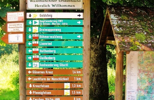 Die gemütlich und liebevoll eingerichtete Ferienwohnung ist 48qm groß, liegt im ersten Stock und für bis zu 4 Personen geeignet. Die Wohnung verfügt über ein Schlafzimmer mit Doppelbett, einen Wohn-/ Schlafraum mit Schlafsofa (1,80m x 2m) und Einzelbett, Radio und Satelliten-TV und einem Badezimmer mit Seife, Fön, Dusche und WC. Die Küchenzeile ist komplett ausgestattet. Hier ist ein Herd mit zwei Platten vorhanden, sowie ein Mini-Backofen, eine Kühl-Gefrierkombination, eine Mikrowelle, eine Kaffeemaschine, ein Toaster, ein Wasserkocher und einem Bügeleisen. In dem Wohn-/ Schlafraum ist ebenfalls ein Esstisch mit Eckbank. Die Wohnung ist über einen separaten Hauseingang erreichbar. Ruhige Lage am Waldrand in 800 m Höhe auf dem Plateau des Klammerfels in Ober-Herzogau, Luftkurort! Panorama 30 km, grandioser Ausblick in das Tal und umliegende Berge und Wälder des Bayerischen- Oberpfälzer- und Böhmerwaldes. Zahlreiche Wanderwege und herrliche intakte Wälder ab Haustür!