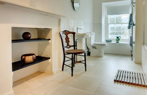Ger y Wysg Farmhouse is a large, impressive traditional building, situated on the owner's working farm in Talybont-on-Usk, in the heart of Brecon Beacons National Park. There's a comfortable and homely air about the farmhouse with the cosy wood burning stoves, a traditional Aga, flagstone floors, a huge pitch pine kitchen table and charming bedrooms. A perfect place for groups and extended families to holiday together, the pet-friendly farmhouse is spacious and surrounded by large lawned gardens and farmland beyond. The farm is a haven for wildlife and a variety of birds can be seen, particularly by Gilestone Pond, a tranquil spot close by.