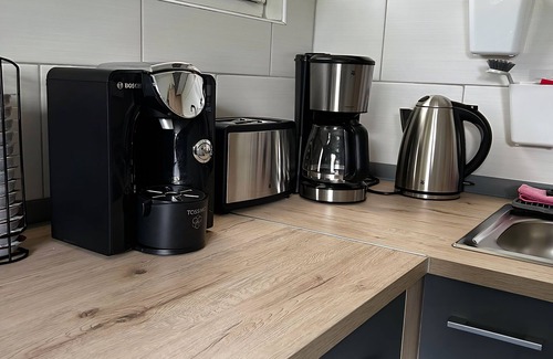 Voll ausgestattete Küche mit Ceranfeld , Airfryer, Backofen, Spülmaschine, Toaster, Tassimo Kaffeemaschine ( inklusive Café Crema Pads) , Kühlschrank mit Eisfach , Kaffeemaschine, Wasserkocher (inklusive 4 Teesorten) , Küchentuch Paket inklusive ( Handtücher, Schwamm, Spülbürste, Küchentuch) und allen wichtigen Küchen Utensilien ideal für Selbstversorger