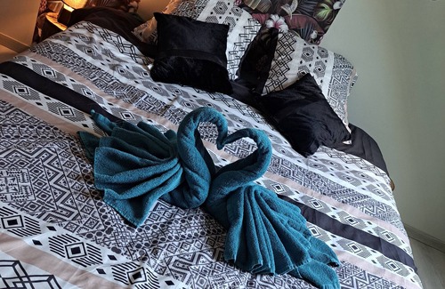A living room and a BBQ grill are featured at this 3-bedroom, 1-bathroom rental. Bathroom amenities include towels and toilet paper. Prepare a home-cooked meal in the kitchen, complete with an oven, a stovetop, and a refrigerator, as well as a coffee maker, a microwave, and cookware.