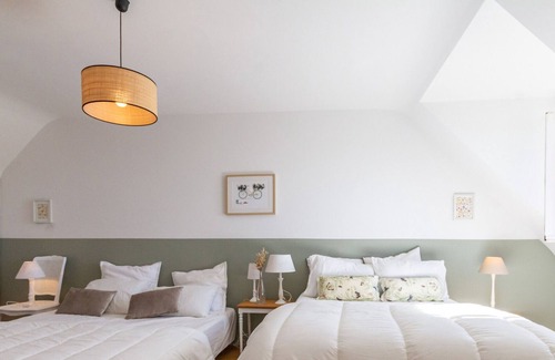 Ker Sin is a renovated detached house, located 100 m from the ocean and the wild coast, 500 m from the beach and 1 km from the shops. Large enclosed garden of 600 m² without vis-à-vis with 2 terraces facing south and north. Parking possible in the property. Ground floor: lounge/living room, separate kitchen, 1 bedroom (160x200 bed), shower room and separate WC. Upstairs: 2 bedrooms (1: 140x200 bed + 2 twin 90x190 beds, 2 with adjoining shower room: 140x200 bed). Additional equipment: wifi, DVD player, connected speaker, dryer, baby bed and high chair. Included: electricity and electric heating. Not included: sheets, towels, mandatory end of stay cleaning (90€) and tourist tax. Animals accepted with a supplement of €10/night: in the kitchen, the garage and the garden only. Free animals beyond a week. Unless stated, services such as cleaning, bed linen, towels etc. are not included in the price of this rental. If pets are allowed (information in the advertisement), charges may be applicable. Only equipment mentioned in this advertisement are present. Equipment not mentioned are not considered to be present.
