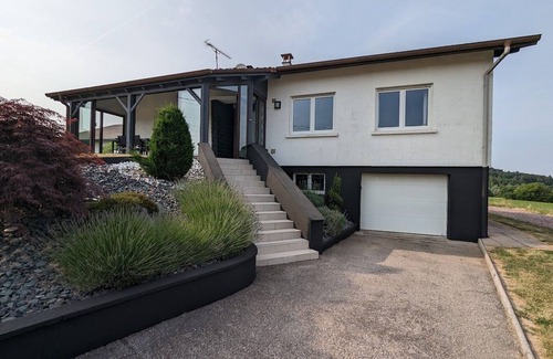 Detached house with 3 bedrooms for 6 people. Quiet environment with a clear view of the countryside. Gîte with 5-seater spa. From the gîte, you can take the walking trails or discover the region by bike. Close to Epinal (10 mins). Golf, canoe course, ice rink. Lake Bouzey is 14 km away, Gérardmer 40 minutes. Detached house on two levels.