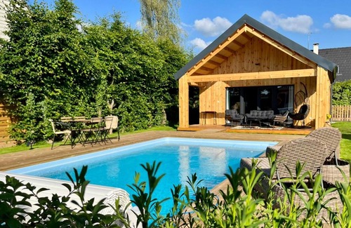 - Living room with sofa bed (2 people type Bz), armchairs and flat screen TV (connected, Molotov TV included), - Fully equipped integrated kitchen: dishwasher, combined oven-microwave, freezer, toaster, filter coffee maker... - Bathroom with shower, WC and washing machine (hair dryer and electric towel dryer), - Bedroom for 2 people with bed 160x200cm, On the mezzanine with steep staircase type "miller's ladder" (not suitable for children under 6 years old): - Sleeping area for 2 people with 2 beds 90cmx190cm. Terrace with comfortable garden furniture, "egg", hammock, deckchairs and barbecue. Many pool games. The swimming pool can be shared only with the owners in the respect of the intimacy of the tenants. Right of way for the owners during the stay for the maintenance of the Spa and the Swimming pool. Secure private parking for 2 cars. The swimming pool is not accessible from mid-October to early April (depending on weather conditions). Welcome to the Cottage des Hauts Poiriers, let yourself be tempted by a timeless well-being stay in this chalet decorated with taste and modernity. You can relax by the heated swimming pool from May to September (inaccessible from mid-October to early April) depending on weather conditions or enjoy the Spa (4 people) available to you all year round (heated from 4 [hidden] to 9 [hidden] ) arranged in an arbor in front of the terrace. Located in Quincampoix, near the owners' house (not overlooked), this unusual gite offers you an experience where calm, comfort and serenity will be the key words. Ideal for a couple or family stay, everything has been thought out to make your stay memorable: pool games, badminton net, Molky, board games, hammock, deckchairs, Spa with Light Therapy, bathrobes, 4k connected TV... . Ground floor : - Bright living room with living room/lounge and open kitchen opening onto the terrace overlooking the swimming pool, Rental charges not included in your rental: - cleaning (compulsory), - the tourist tax. bedroom(s) on the ground floor, TV, Electric heating, Baby bed, Children's games, Sheets provided, Household linen, Internet connection, spa-sauna-hammam, Private car park, Swimming pool on site, Washing machine, Dishwasher , Cleaning package, Terrace, Garden, Microwave, Flat screen TV, Freezer, Garden furniture, Barbecue, Detached house. Unless stated, services such as cleaning, bed linen, towels etc. are not included in the price of this rental. If pets are allowed (information in the advertisement), charges may be applicable. Only equipment mentioned in this advertisement are present. Equipment not mentioned are not considered to be present.