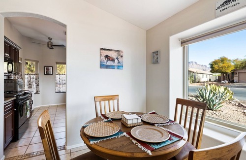 Best-rates for the Gold Canyon house starts from $219 per night with includes Wellness Facilities, Internet, Parking, TV, Security/Safety, Bedding/Linens, Fireplace/Heating, Child Friendly, Kitchen, Laundry, Air Conditioner, Balcony/Terrace with all other facilities. BedroomVillas matches every traveler with their perfect villa, resort, or rental and whether you are traveling with a group, friends, family, or pets.