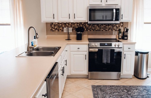Outside, you’ll find a charming Florida room and a fully lit backyard — great for enjoying a cocktail in the evening. We also provide a cornhole set for a little outdoor fun. The home includes a full-size washer and dryer for your convenience, and we provide a starter supply of paper towels, toilet paper, trash bags, dish soap, dishwasher pods, and laundry detergent. Forgot something? Each bathroom has a limited supply of toothbrushes, toothpaste, and makeup wipes just in case.