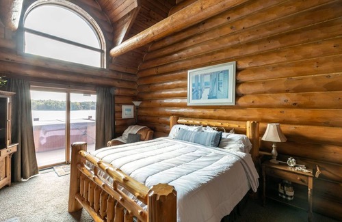 Gorgeous 7 bdrm loglodge fireplaces sauna hottub sleeps 24 great view pier boats | Cabin in Wautoma