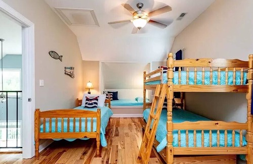 The house sits on a large private lot with lake access. It offers 2 full kitchens and living areas. There are 5 bedrooms and 3.5 bathrooms with 11 beds plus a sofa bed in the living room. There is a beautiful wood burning fireplace in the main living area; firewood is provided by the host. On the 1st floor there is a small game room for a little indoor fun.