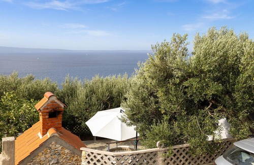 This charming holiday home is located on a hill surrounded by greenery and offers absolute living comfort. The area around the house is full of Mediterranean plants and invites you to relax with a view of the sea. The nearest pebble beach is just a hundred metres away, and the area is also ideal for hiking and cycling.