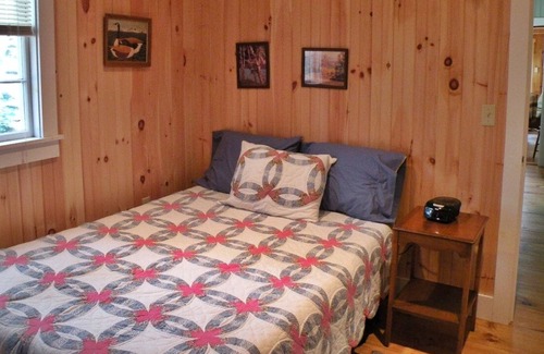 The kitchen is equipped for you to prepare quick meals or gourmet dinners. A gas grill and picnic table are right outside your kitchen door. Sit on the covered porch with morning coffee and watch the loons.