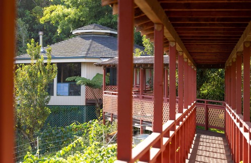 WOW! Looking for a stay that’s like nothing you’ve ever stayed in before? This is what guests have said again & again. Lilinoe retreat is a stunning retreat with a one of a kind Japanese style 150ft covered bridge, vaulted ceilings, and wall to wall windows with jungle views all WITHOUT having to drive forever off the beaten path. Stay close to the highway for all your adventuring and yet be completely secluded on our 4 acre farm enjoying mini cows, farm fresh milk, and all the comforts of home. Lilinoe Retreat is a home on our family's 4 acre farm in Honokaa HI and we have done our best to make sure it is your home away from home. Our family of 5 live, work, and play in the dome house in front and we love sharing this unique place with others and offering our recommendations of places to go and things to eat. When you drive up you'll park out front of our home - follow the stairs to the covered bridge and that will lead you to your retreat. The home you stay in is surrounded by grazing pastures frequented by mini cows, chickens, and wild pigs. Our land was origionally a macadamia nut orchard and you'll see plenty of the trees still cover the land. As we have it available we provide fresh milk from our cows during your stay. We also offer farm and milking tours for additional booking fees - message if you'd like more details on this when you book. Aloha and we look forward to hosting you.