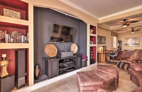 This spacious 4-bedroom, 4-bath home on the Indian River is an ideal choice for family and friend gatherings. Situated just across the river from the Kennedy Space Center, you'll have a front-row seat to rocket launches. This house offers exclusive amenities including a pickleball court, flat-screen TVs in every room, a gourmet kitchen, a shared heated pool with the upstairs 3-bed, 2-bath unit, a relaxing hot tub and a fishing dock. Let us know if you're interested in the upstairs unit as well.