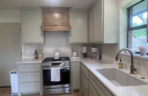 Welcome to your next unforgettable stay in Norman. A perfect distance from OU Campus & just 15 minutes south from Thunder Arena & Downtown OKC. This fully remodeled, high-end 3-bedroom home is designed to pamper and impress, offering comfort, style, and convenience just minutes from Norman's best shopping, dining, and entertainment. The home features two elegant king suites with premium linens, plus a third bedroom with two full-size beds, comfortably accommodating up to six guests. The open-concept floor plan provides generous space and privacy, with multiple areas to relax, unwind, or enjoy time together.