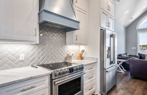 The home includes a farmhouse dining table that can seat 10+. The main bar seats 5 and the smaller bar will seat 3-4. There is a bonus farmhouse table located on the back deck with beautiful water views. The kitchen is stocked with plenty of dishes and utensils. Granite counter tops and hardwood floors throughout the home. On the ground floor there is patio furniture that seats 8. There is also a propane grill on the ground floor. The home enjoys a 75” living room TV, a 58” TV in the first master, and 50” TVs in the other master and the loft.