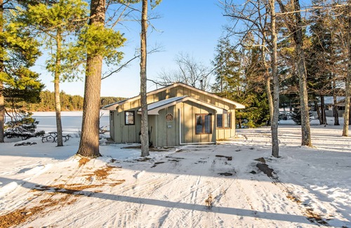 Enjoy spectacular lake views four seasons of the year from this charming waterfront cabin, sitting right on the shore of Deer Lake, part of the Three Lakes/Eagle River chain of 28 lakes. As part of the Northernaire Resort, shared amenities such as an indoor pool, indoor and outdoor hot tubs, and a gym are at your doorstep, and you'll also have the option of renting a dock on the property. Enjoy unparalleled summertime access to all the area’s aquatic activities, including fishing, boating, kayaking, or swimming. In the winter, try an afternoon of ice fishing, snowmobiling, or snowshoeing. Tiny Three Lakes (population 498), four miles the west, holds a few restaurants, a winery, and a small grocery store. For more options, head to Eagle River, 14 miles away.