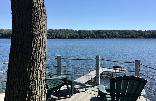 Originally built in 1940 by a Syracuse industrialist as a family summer camp, The Lake House remains in the family and has been loved by four generations. The house is set on expansive grounds with huge shade trees, a private dock, two tired deck, an outside fire pit, outdoor eating areas, and plenty of room to spread out.