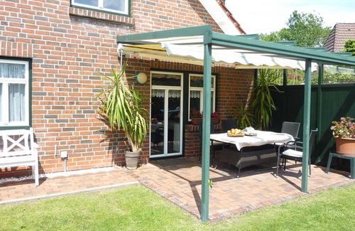 In our garden with lawn you can sunbathe to your heart's content on the existing sunbeds. A children's playground is nearby. The apartment "Inselperle" (45 sqm) for up to four people and is located on the ground floor. The apartment is tastefully decorated in a typical Frisian country house style bright and friendly and allergy-friendly and technically high quality. At the kitchen of the apartment "Inselperle" is a beautiful covered sun terrace.