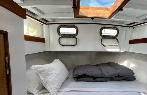 Enjoy HEART a great wood boat for a memorable weekend. Stateroom has comfy sleeping quarters with down pillows & comforters.